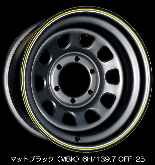 | 15x6.5 | 40 | 6 | 139.7 | 24,000 | 24,000 | 2,000 | 200系ハイエース / NV350キャラバン対応 |